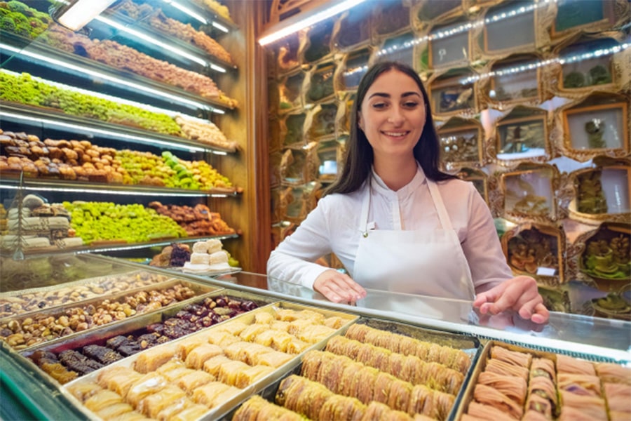 You can order from the covered bazaar area and order many products such as delicious baklava, Turkish delight, Turkish coffee, Turkish tea, Hazelnut or pistachio powder from our website.
