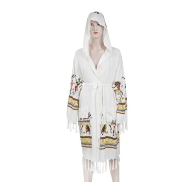 Bedinn African Woman in Loincloth Bathrobe with Bamboo Printed Hoodie