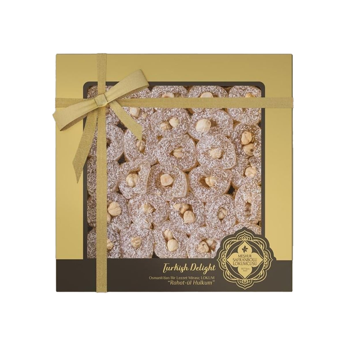 Meshur Safranbolu Lokumcusu Coconut Coated Turkish Delight with Hazelnut in Box 650 gr (22.92oz)