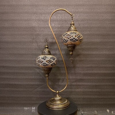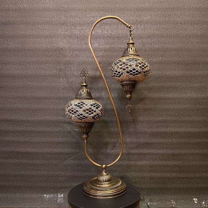Grandbazaarist Double Shade Mosaic Turkish Filigree Table Lamp