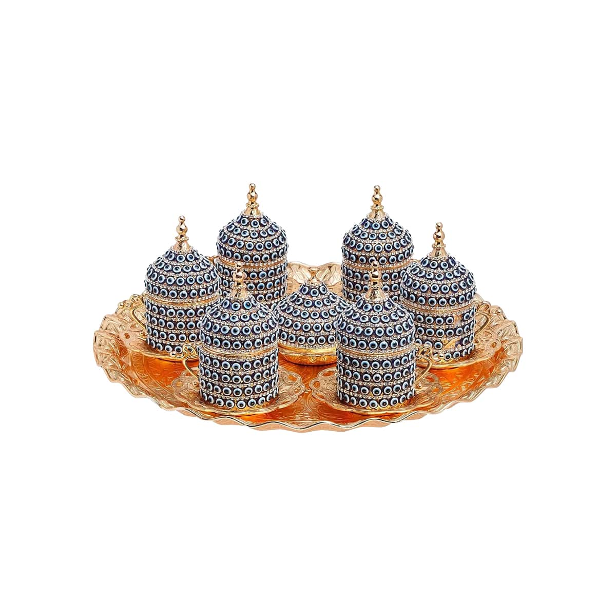 Grandbazaarist Evil Eye Gold Turkish Coffee Set for Six