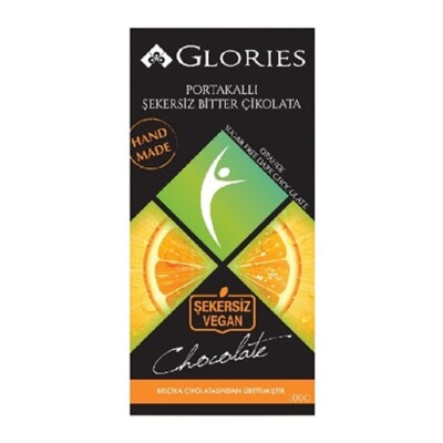 Glories Unsweetened Vegan Dark Chocolate with Orange 100 G 3.5oz