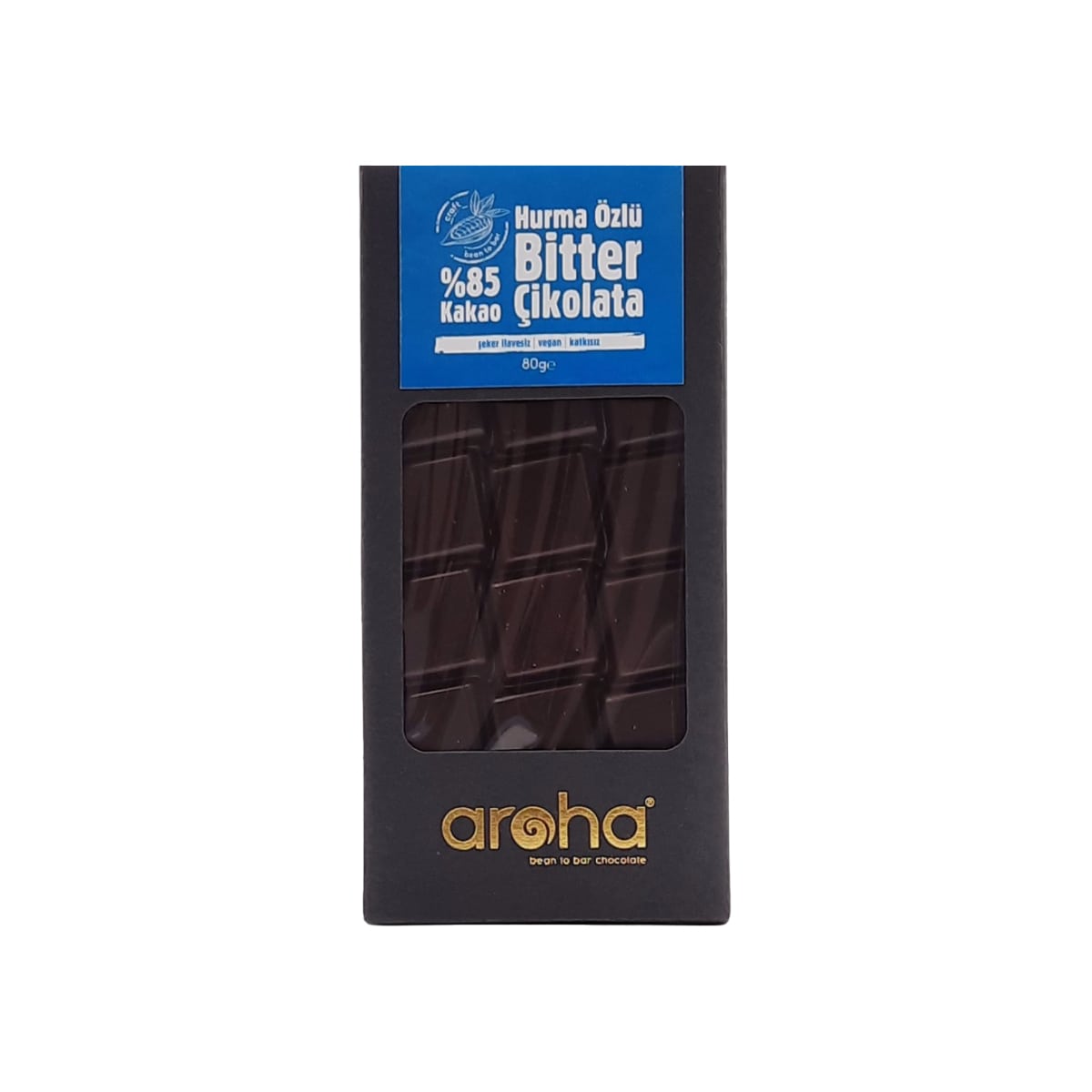 Aroha Cikolata Gluten-Free – No Added Sugar and Vegan 85% Dark Chocolate with Date Fruit Extract Aroha Cikolata 80 gr (2.82oz)