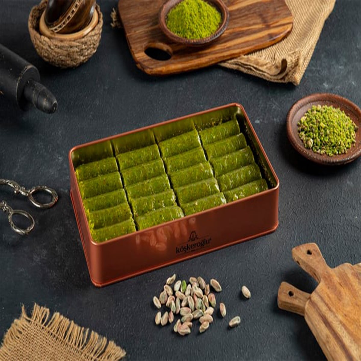 Köşkeroğlu Pistachio Wrap Baklava Metal Box 750 gr (26.46oz)