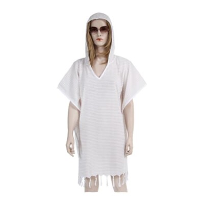 Bedinn Loincloth Dress is Beige With Thin Stripes with a Hoodie