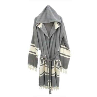 Bedinn Loincloth Robe Hooded Fish Back Striped Black