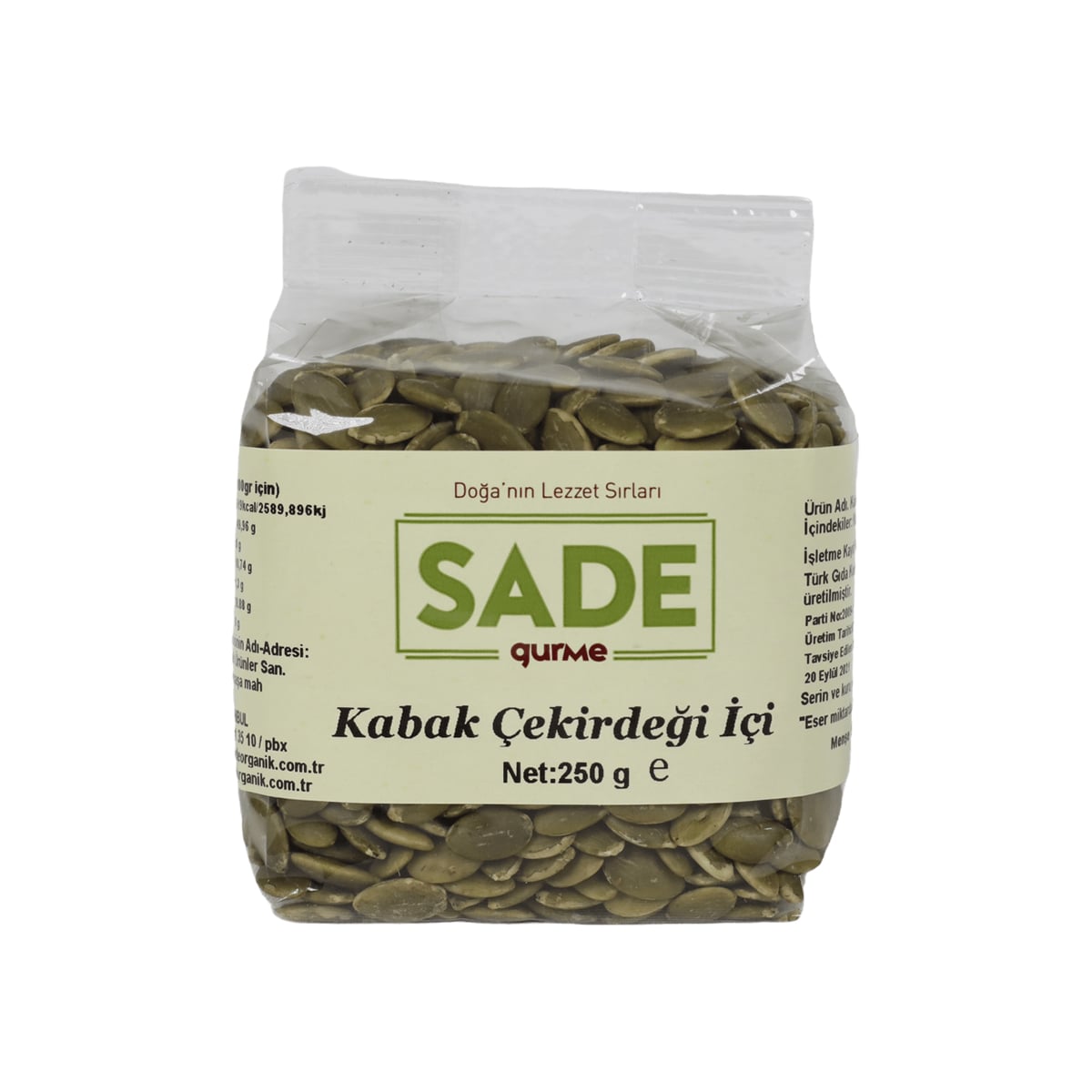 Sade Organik Shelled Pumpkin Seeds Sade Organik 250 gr (8.82oz)