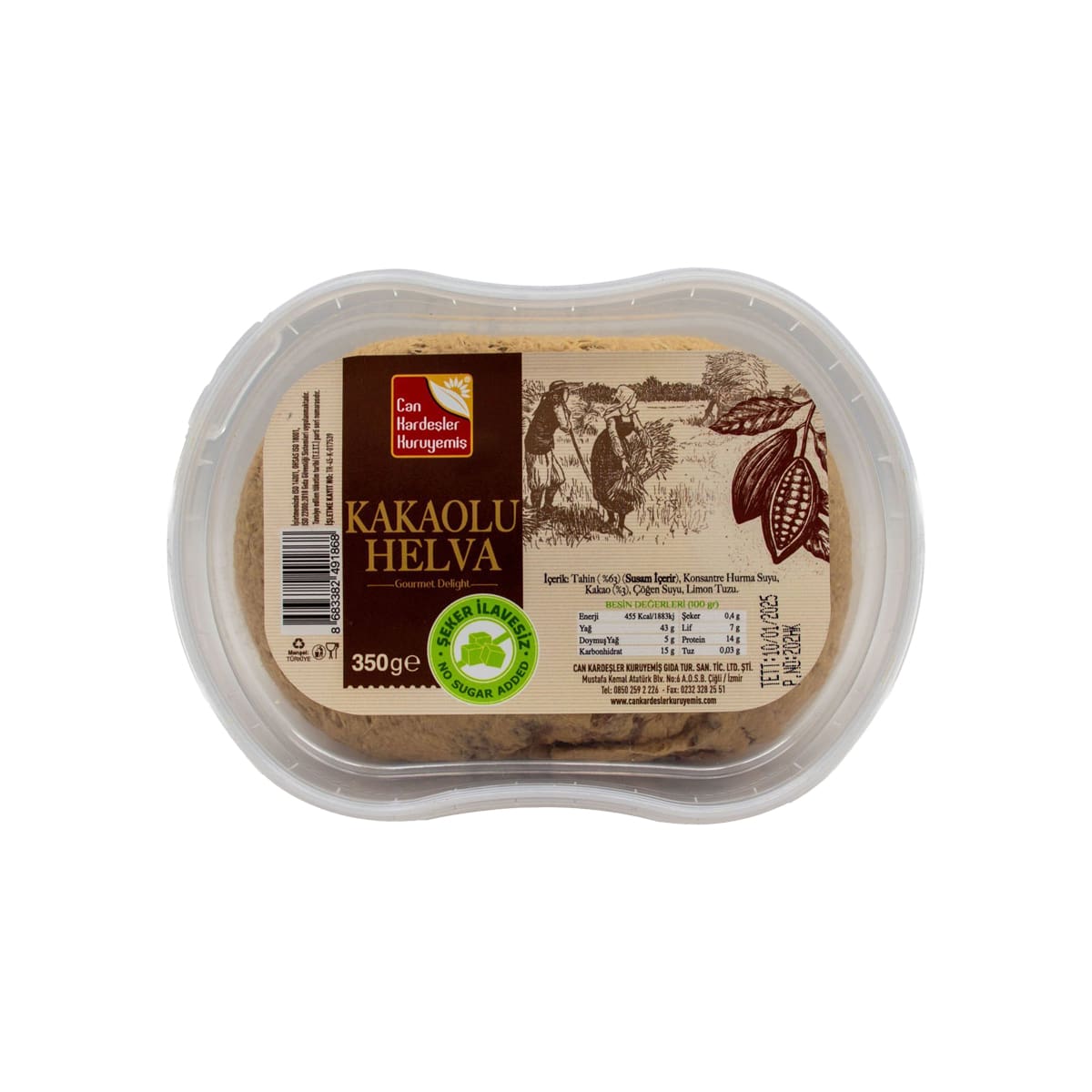Can Kardesler Kuruyemis Sugar-Free Cocoa Tahini Halva Can Kardesler Kuruyemis 350 gr (12.34oz)