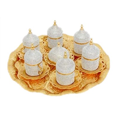 Grandbazaarist Turkish Coffee Set Crystal Coated Gold